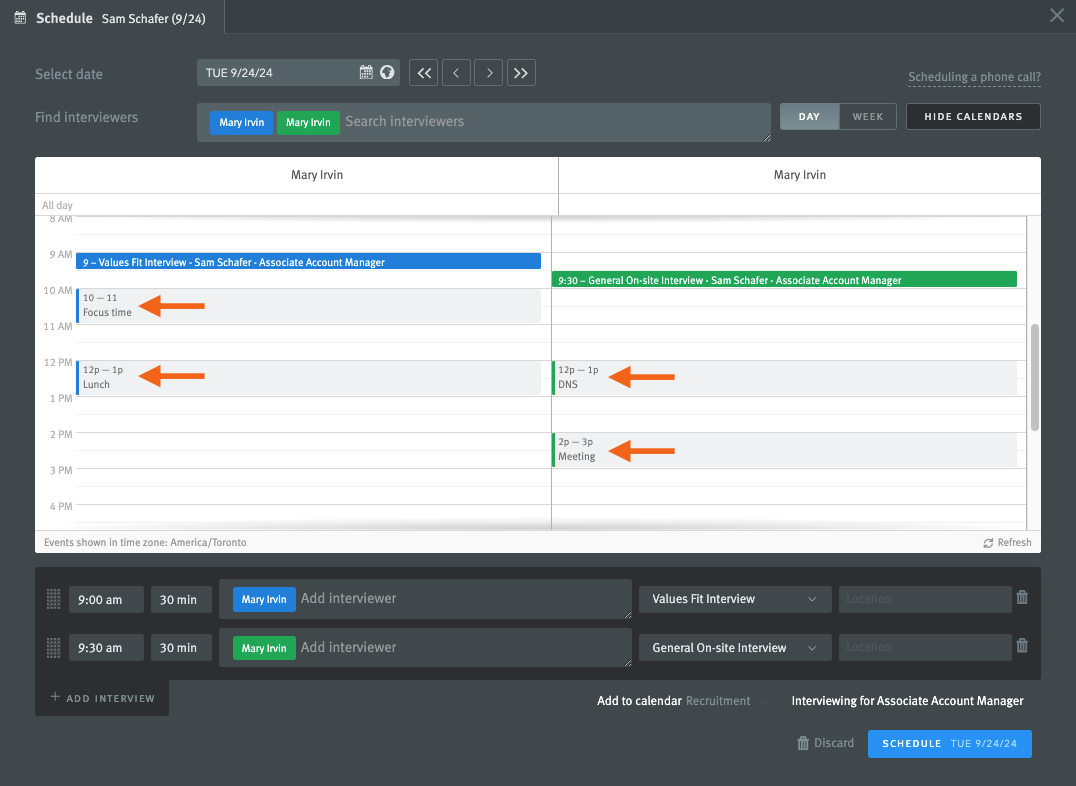 - Allow users to view the same calendars and events that they can see in Google Calendar in Lever. For example, if a user already has access to a colleague's calendar and can view their events, they’ll also be able to view other peoples' events, and the names of those events on the availability finder.
