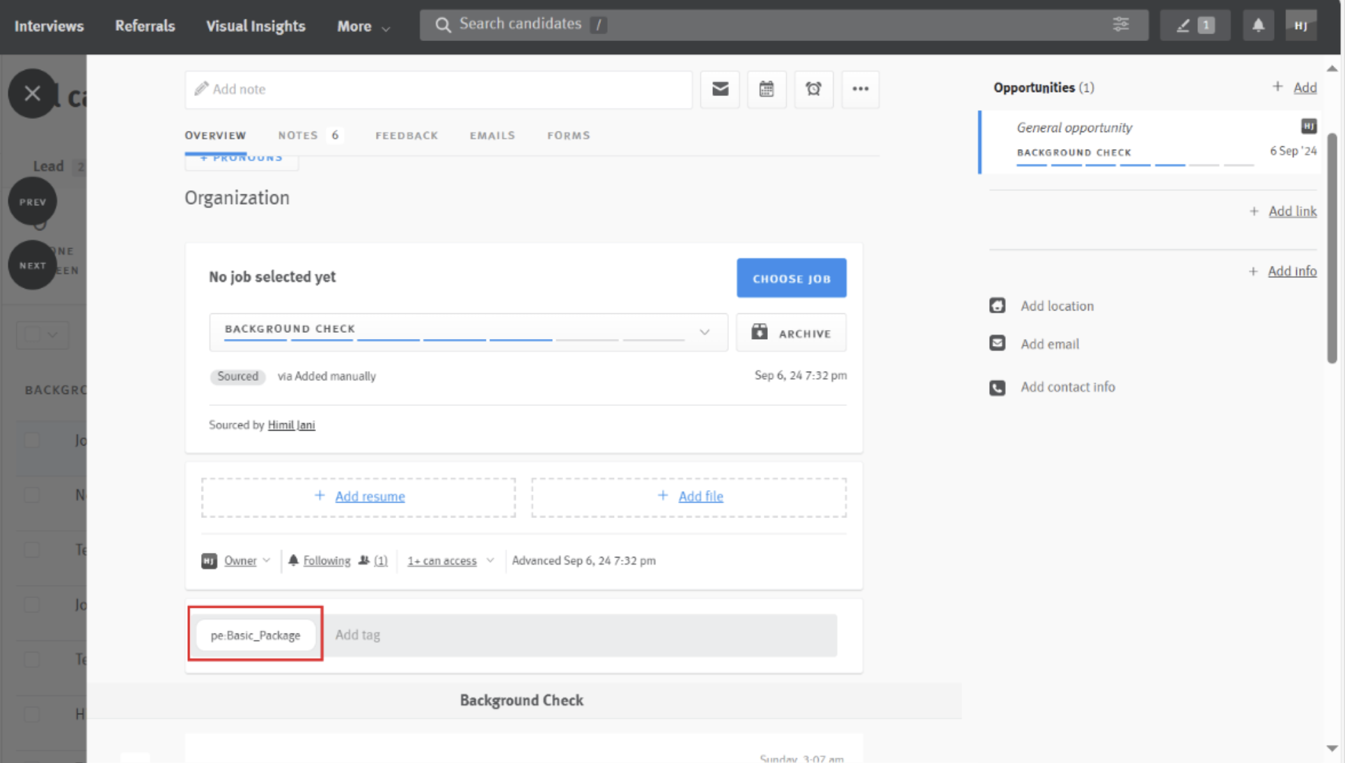 - You may elect to add the package tag to the job posting. All candidates associated with the job after configuration will automatically inherit the package tag. For more information, refer to our help article on creating and using tags.