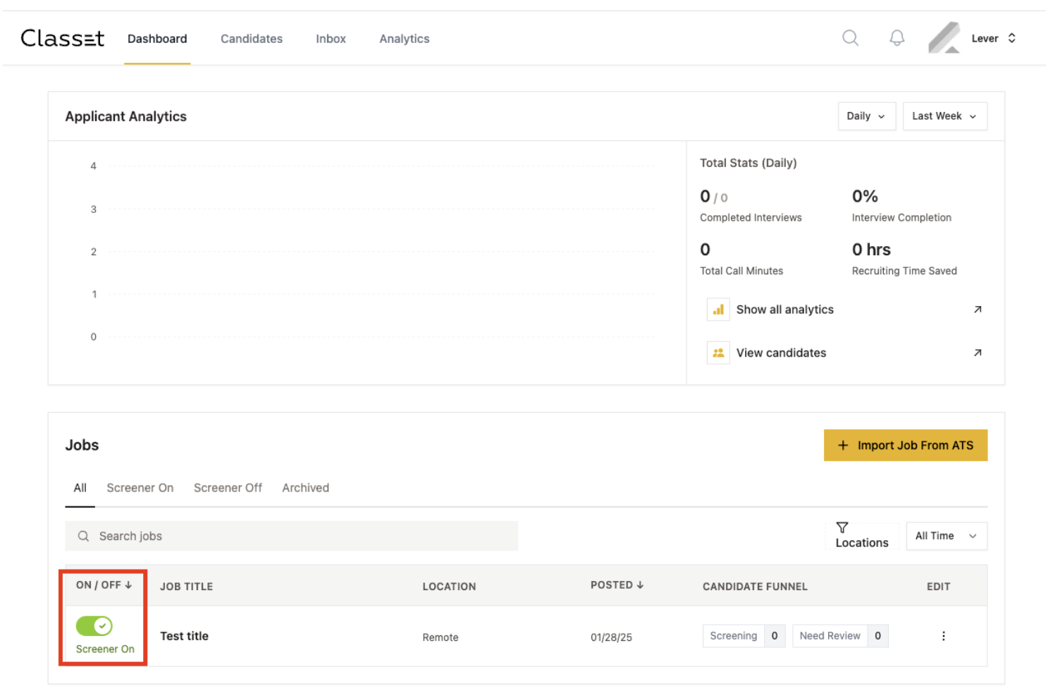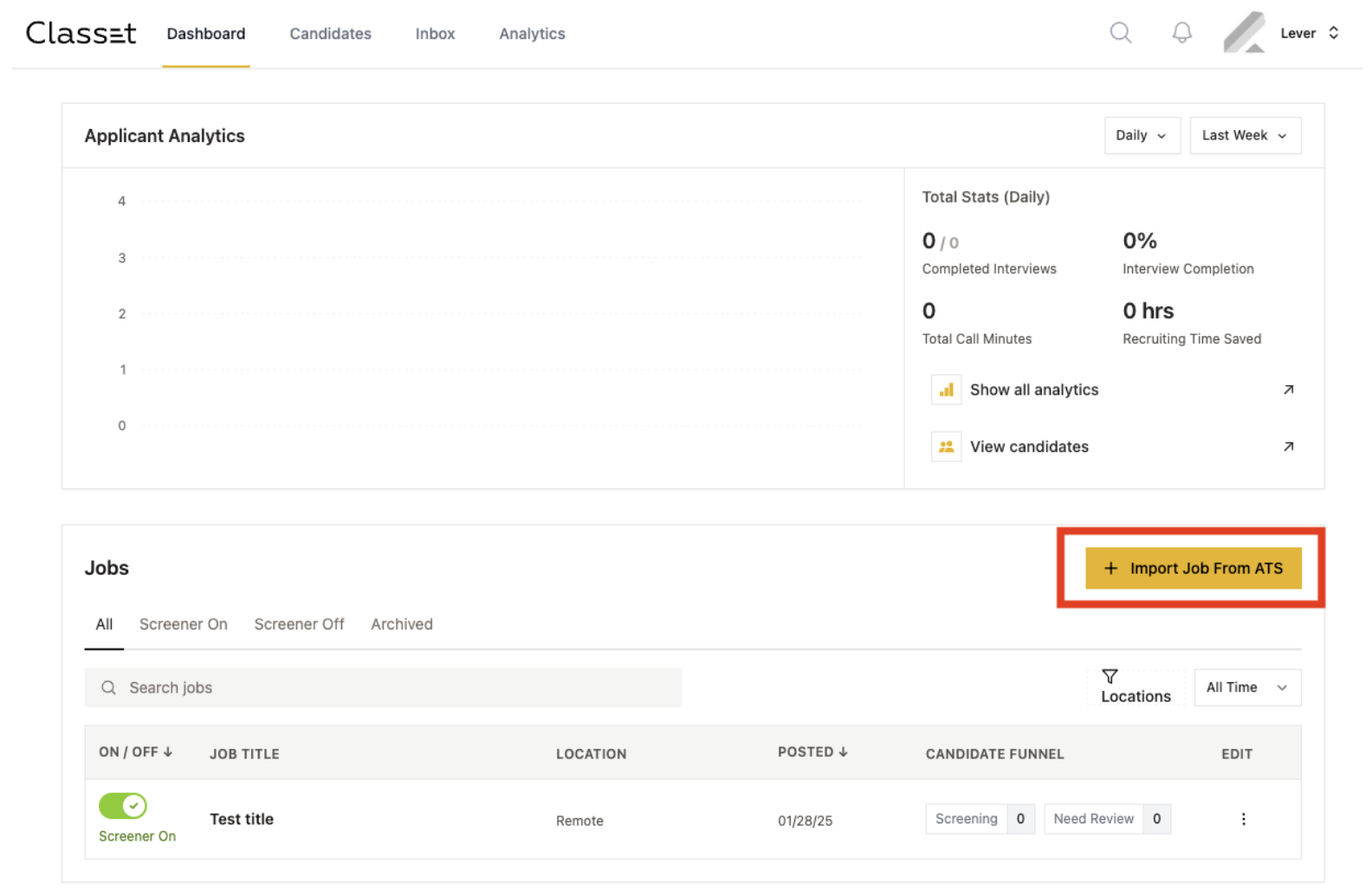 With the Classet integration with Lever, users can automatically trigger a phone screen the moment a candidate reaches a specific stage in the funnel. Results – including a full transcript, audio recording, and summary – are sent back to Lever, attached directly to the candidate’s profile. This enables faster screening, better insights, and a streamlined workflow – all within Lever. For more information refer to the Classet website.