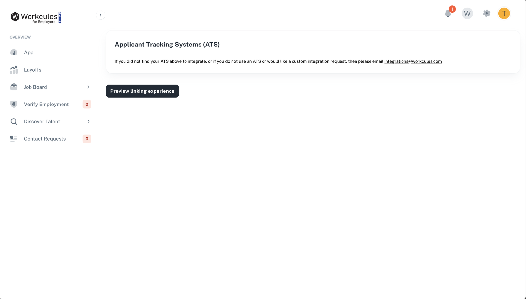 - Under the ATS Integrations section, click the Preview linking experience button.