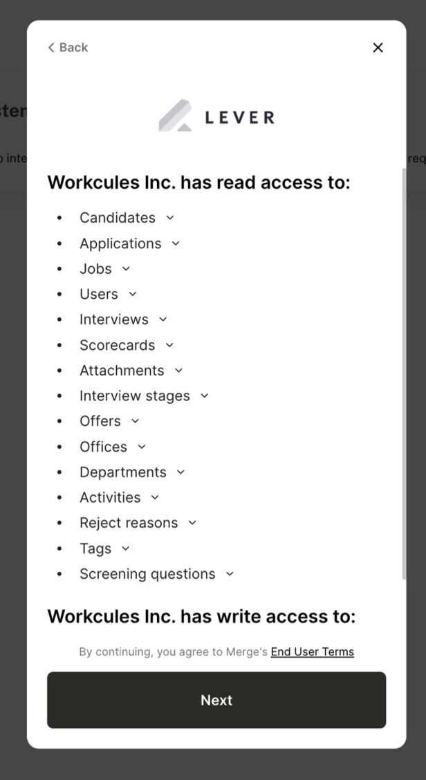 - The Workcules integration requires read access to display jobs, job attributes, candidate pipelines and applicant flow in order to help you reach candidates through Workcules. You can edit or alter any of these job postings on the Workcules platform. All job posting management can be executed on your Lever platform.